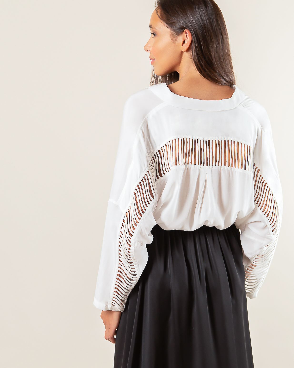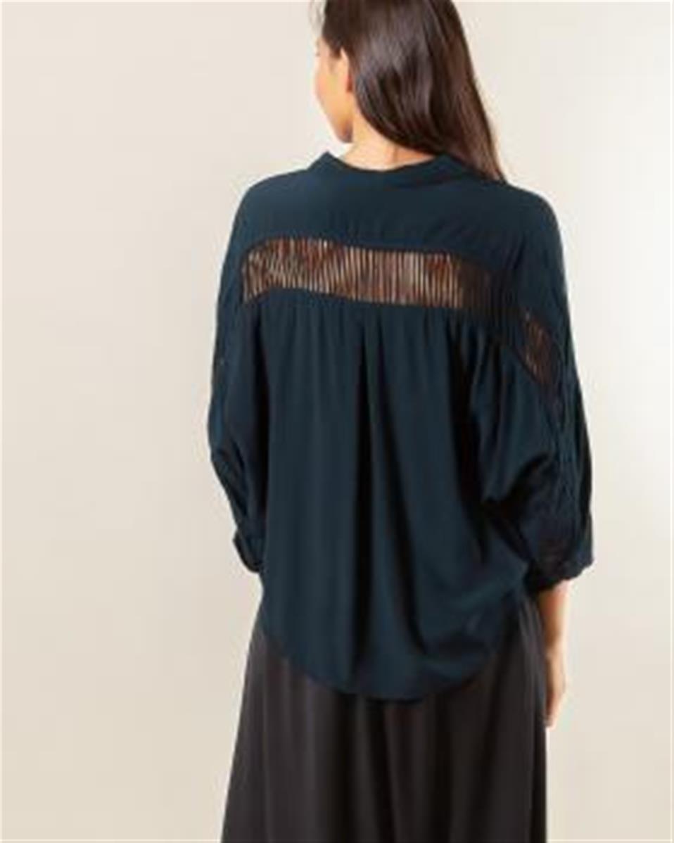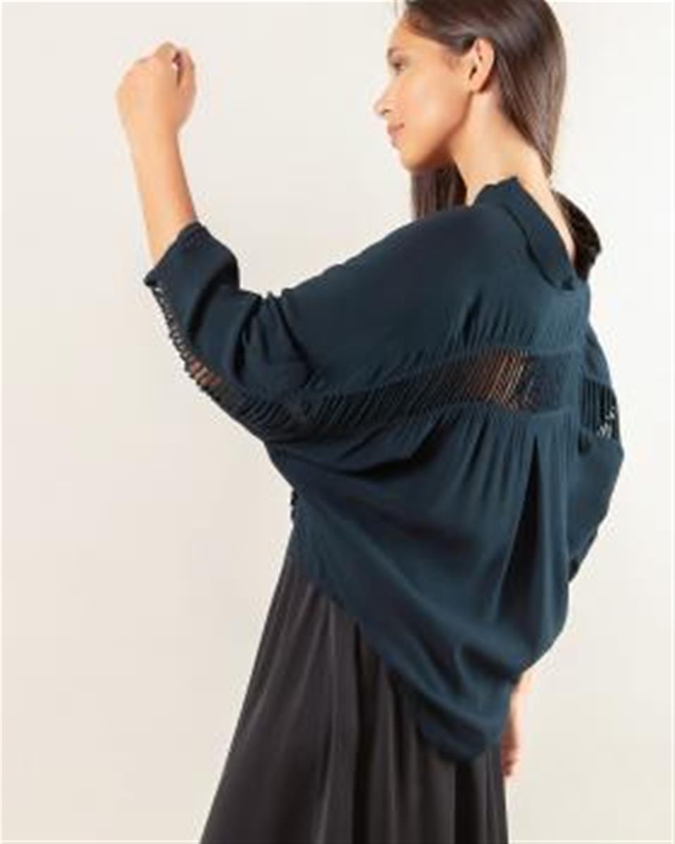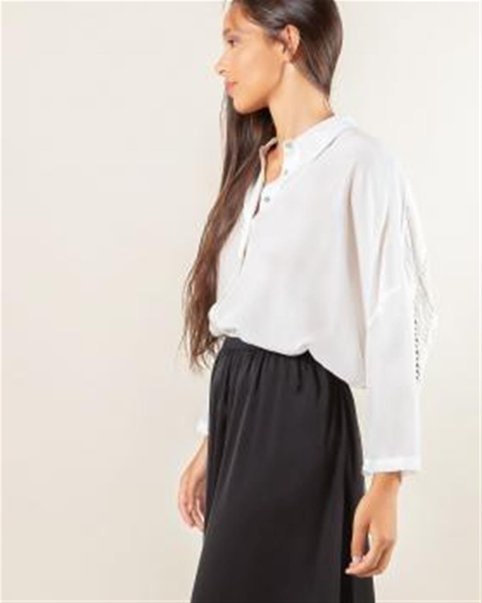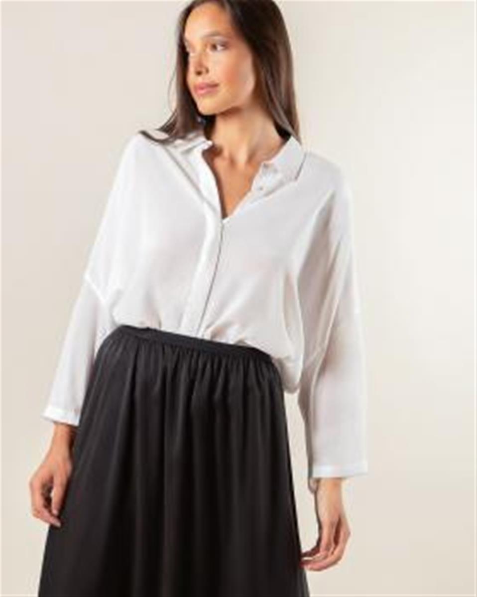 Belle chemise aux lignes sobres et épurées, aux manches 3/4 oversize, épaules tombantes.