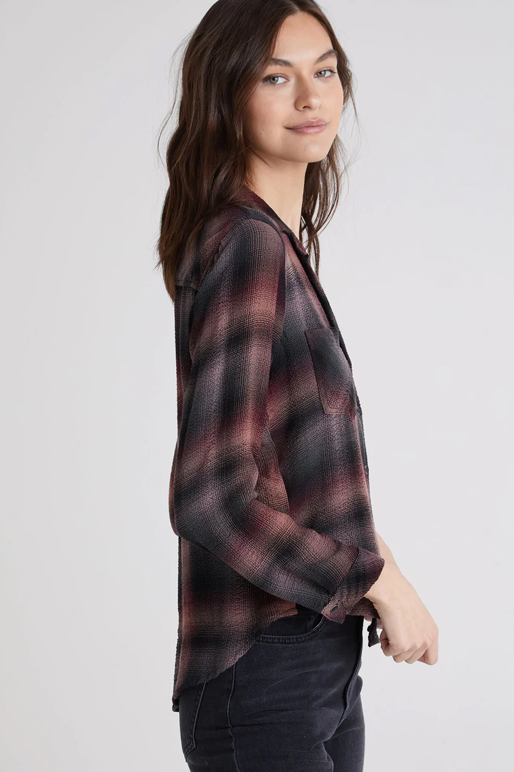 Chemise coupe droite, imprimé à carreaux rouge bordeaux.