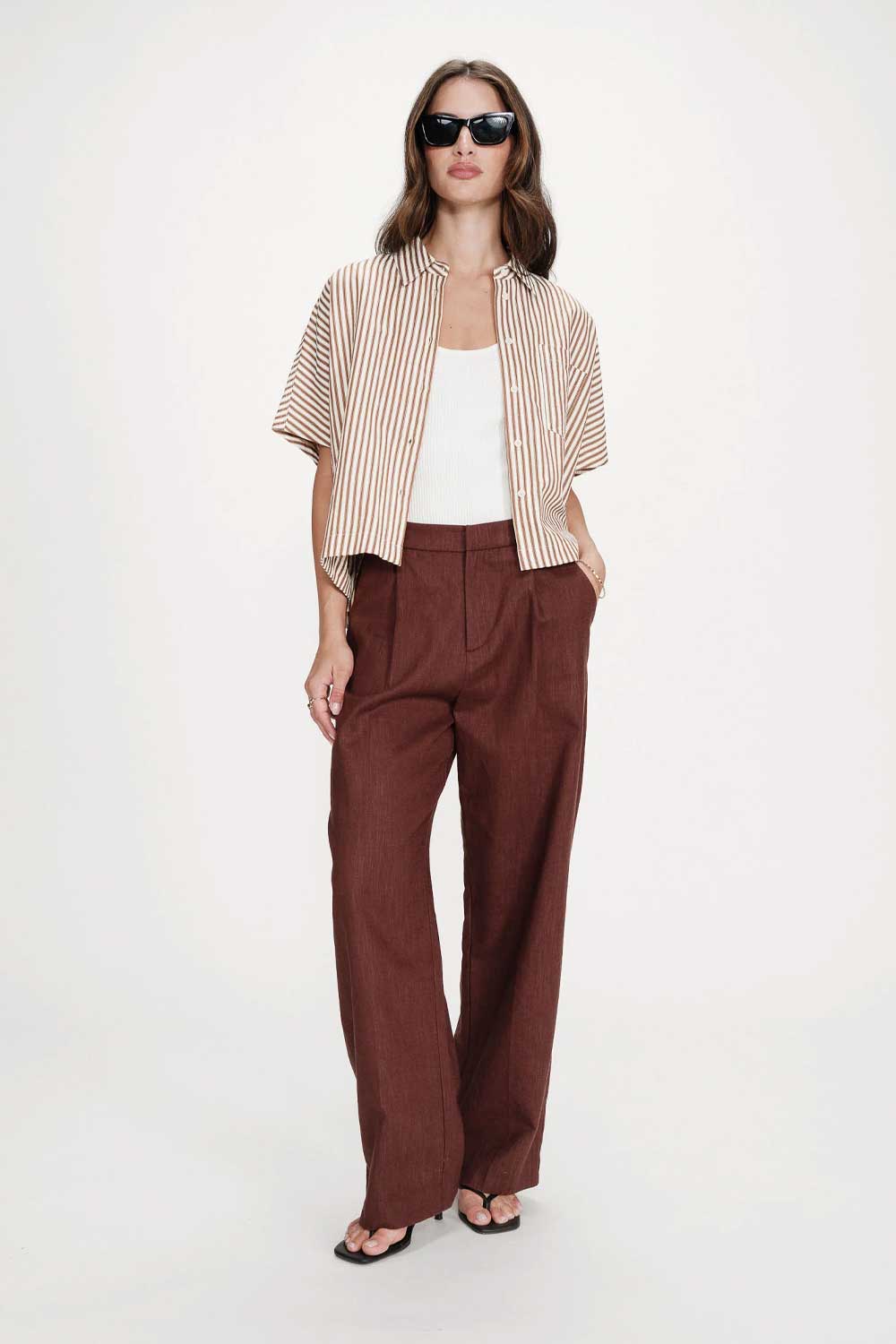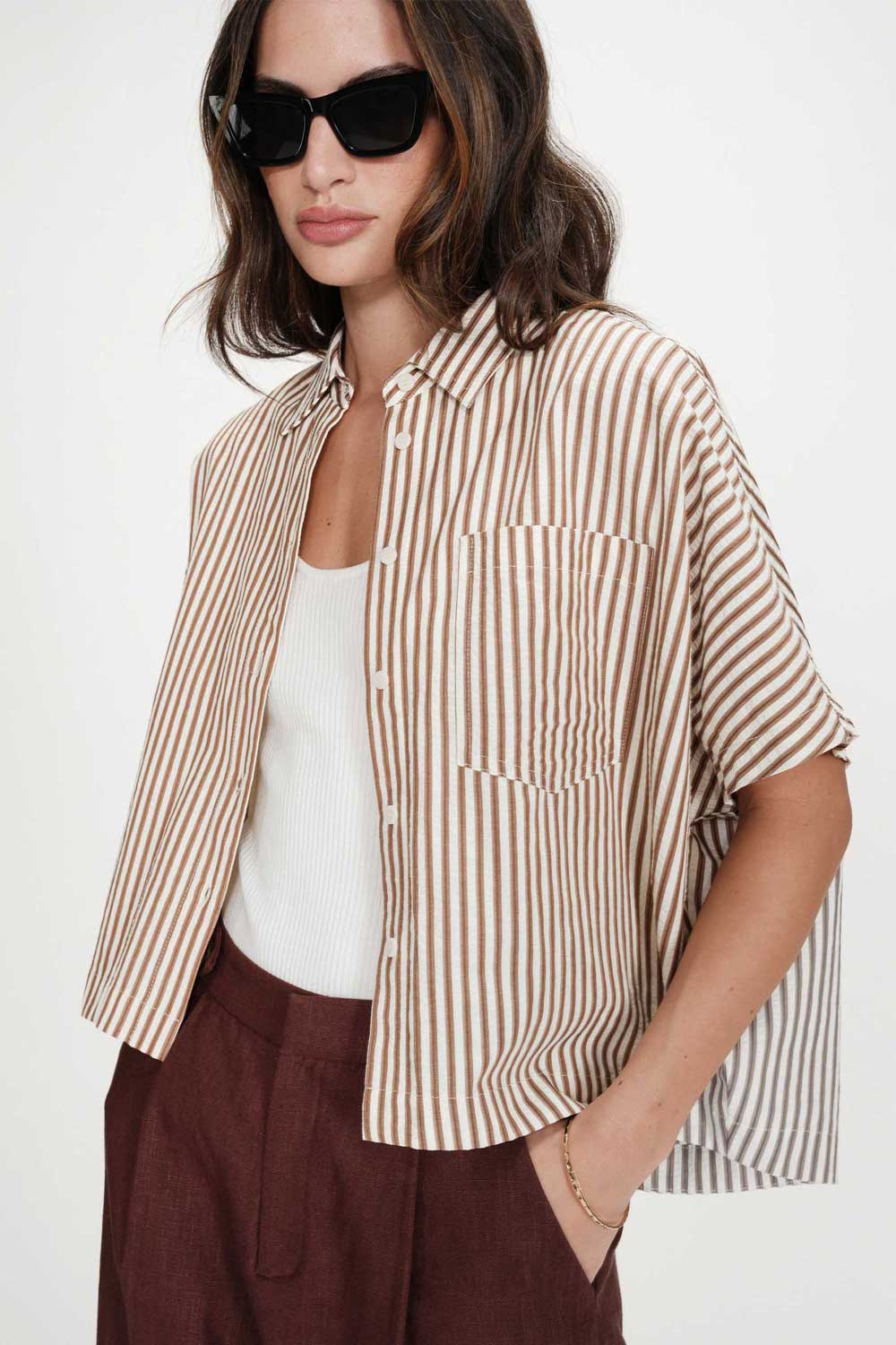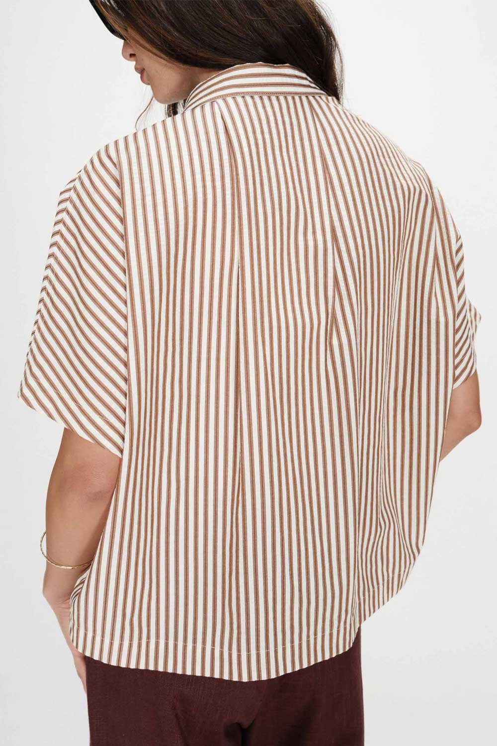Chemise oversize, couleur blanc à rayures mocha.