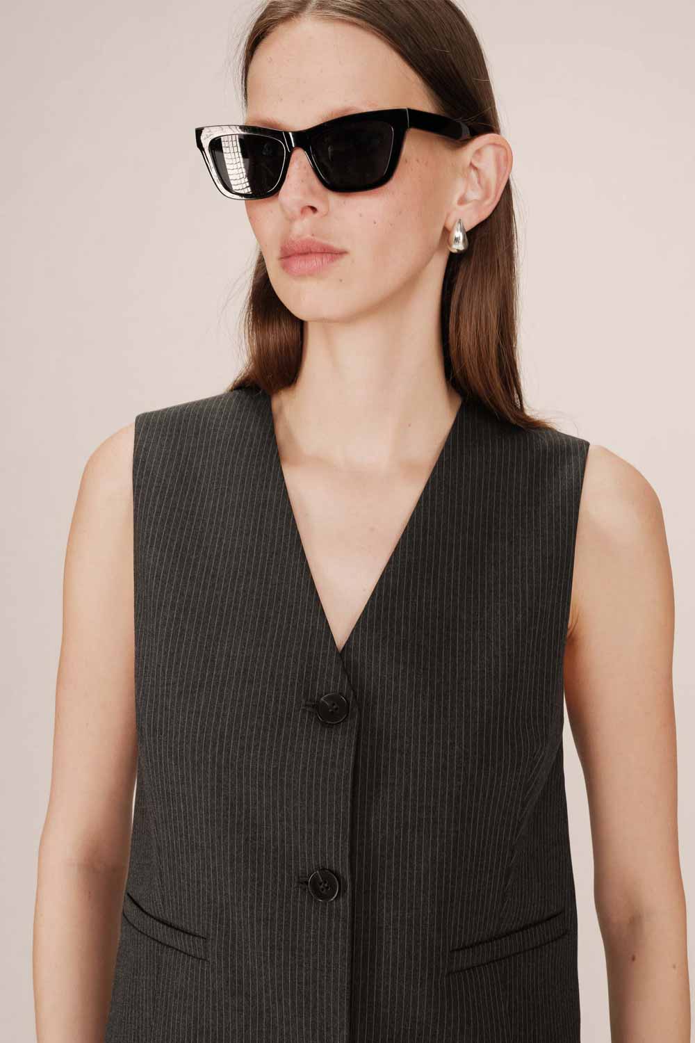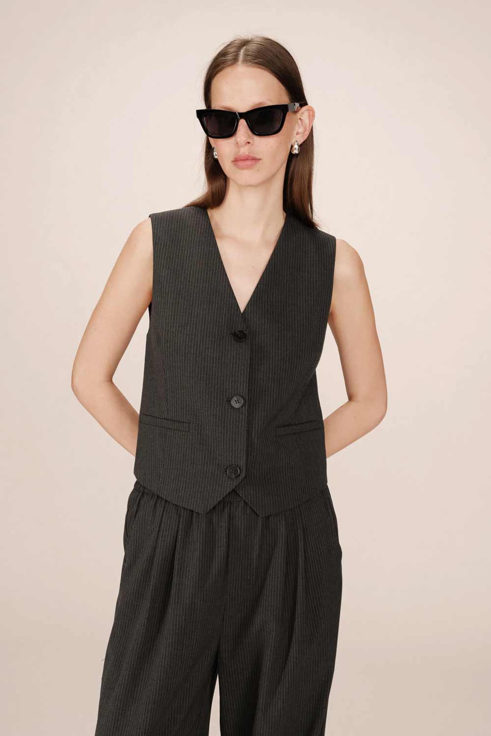GILET DROIT SISTER RAYURES ANTHRACITE