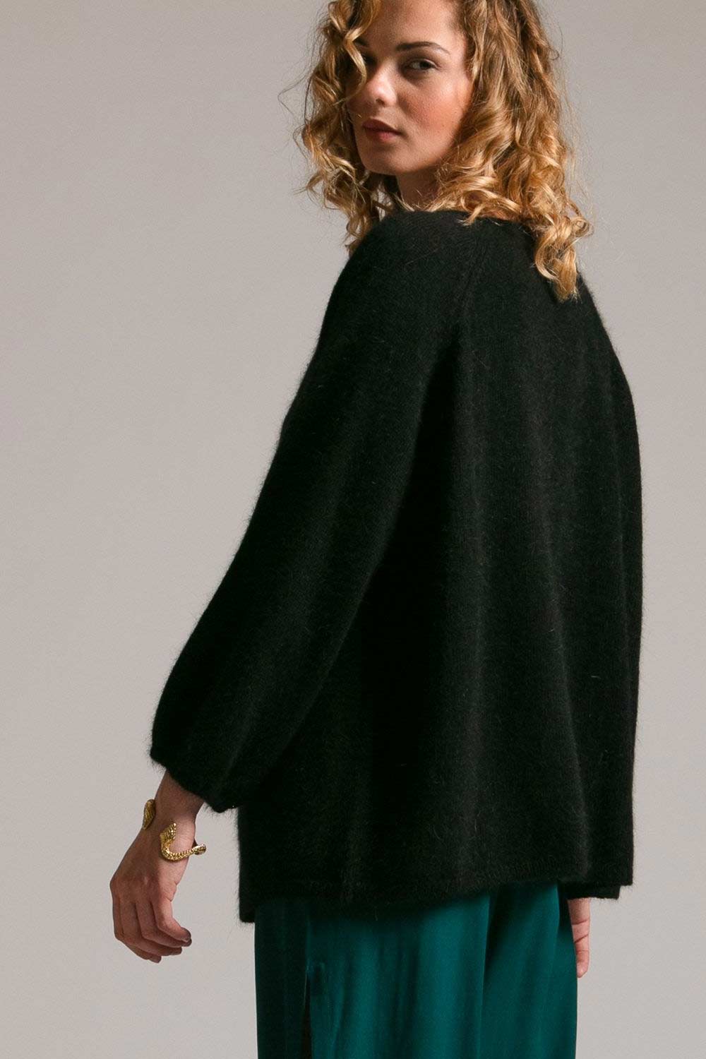 Gilet long en angora, couleur noir.