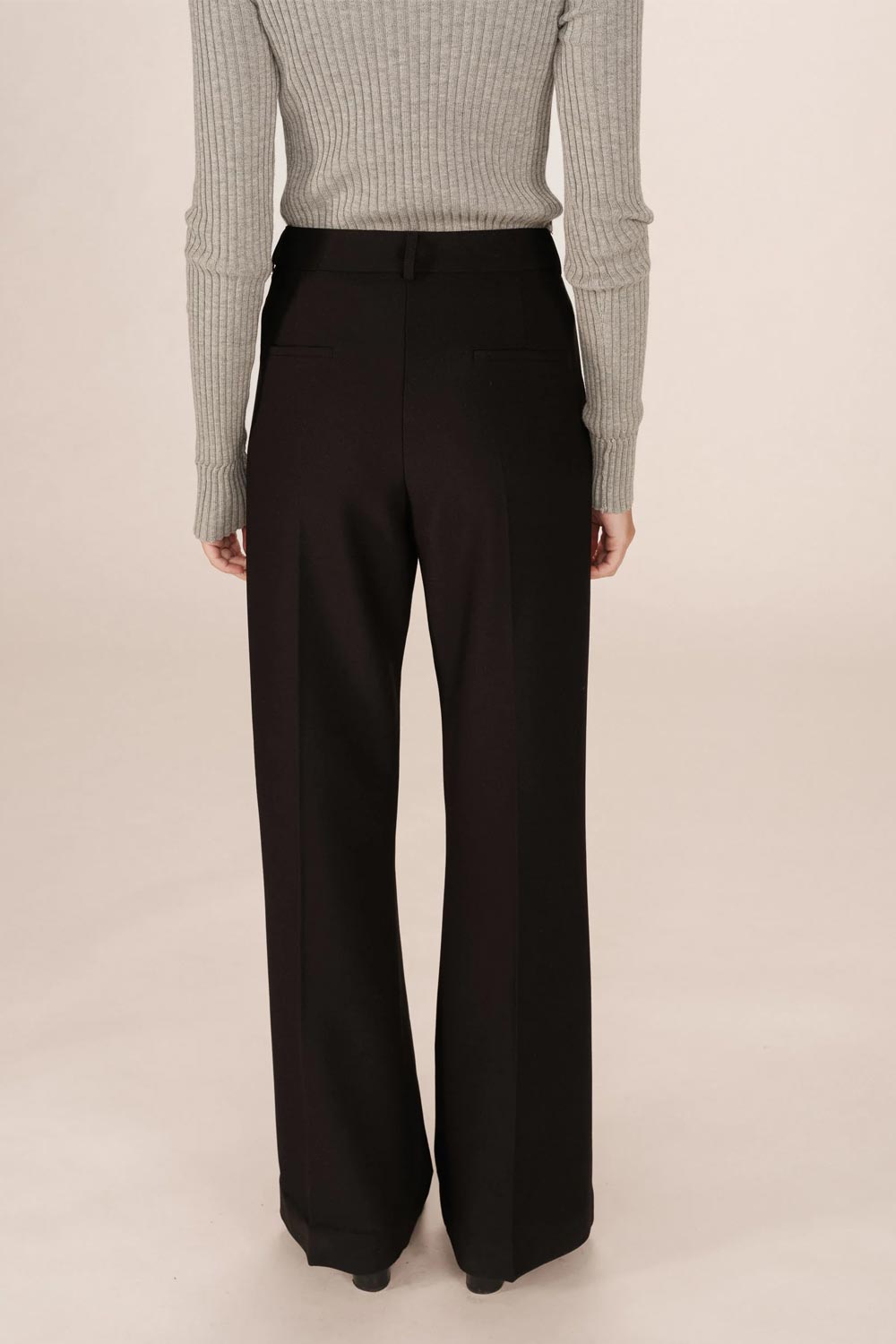 Pantalon tailleur, coupe ajustée et flare, couleur noir.