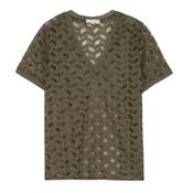 Top aux découpes graphiques, coupe droite, couleur kaki.
